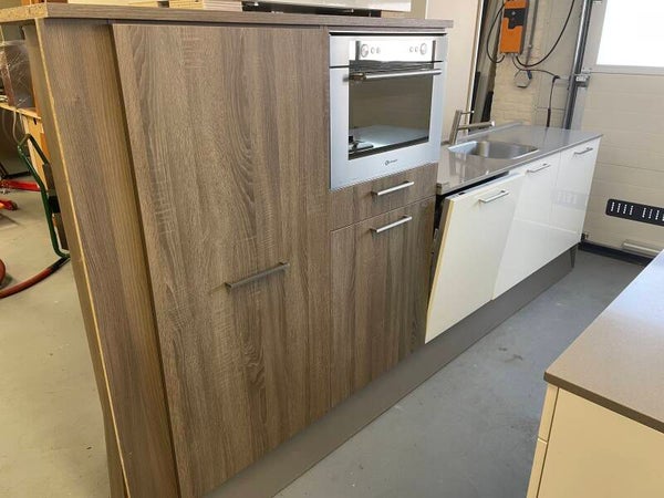 Ben je op zoek naar een moderne, complete keuken met een frisse uitstraling? Deze prachtige Nuva keuken met composiet werkblad in off-white met houtlook combineert een warme uitstraling met strakke, moderne lijnen. Ideaal voor zowel een eigentijds als tijdloos interieur.
